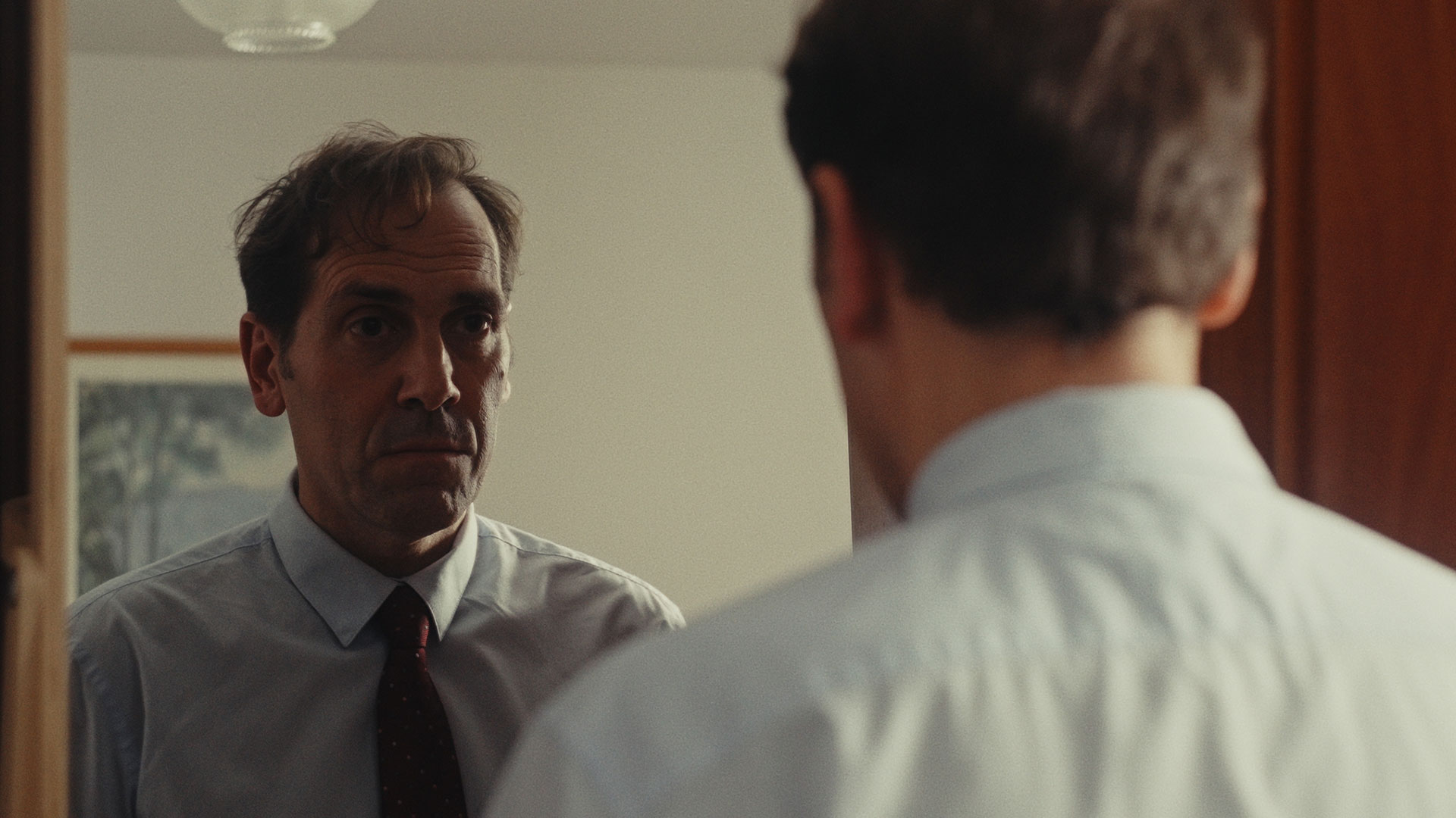 Santi, una mica pertorbat, intenta convèncer-se davant del mirall que cadascú rep el que es mereix.